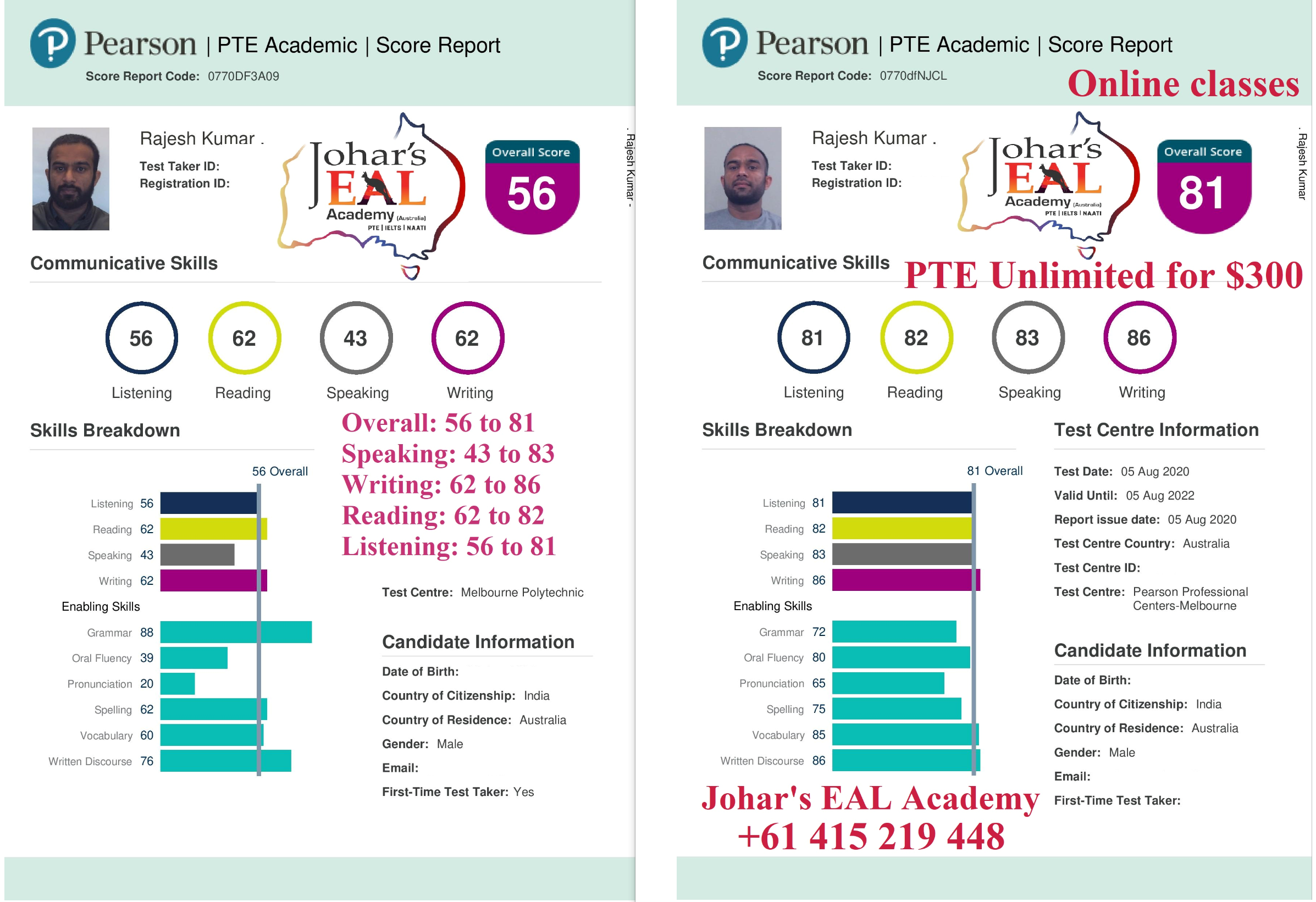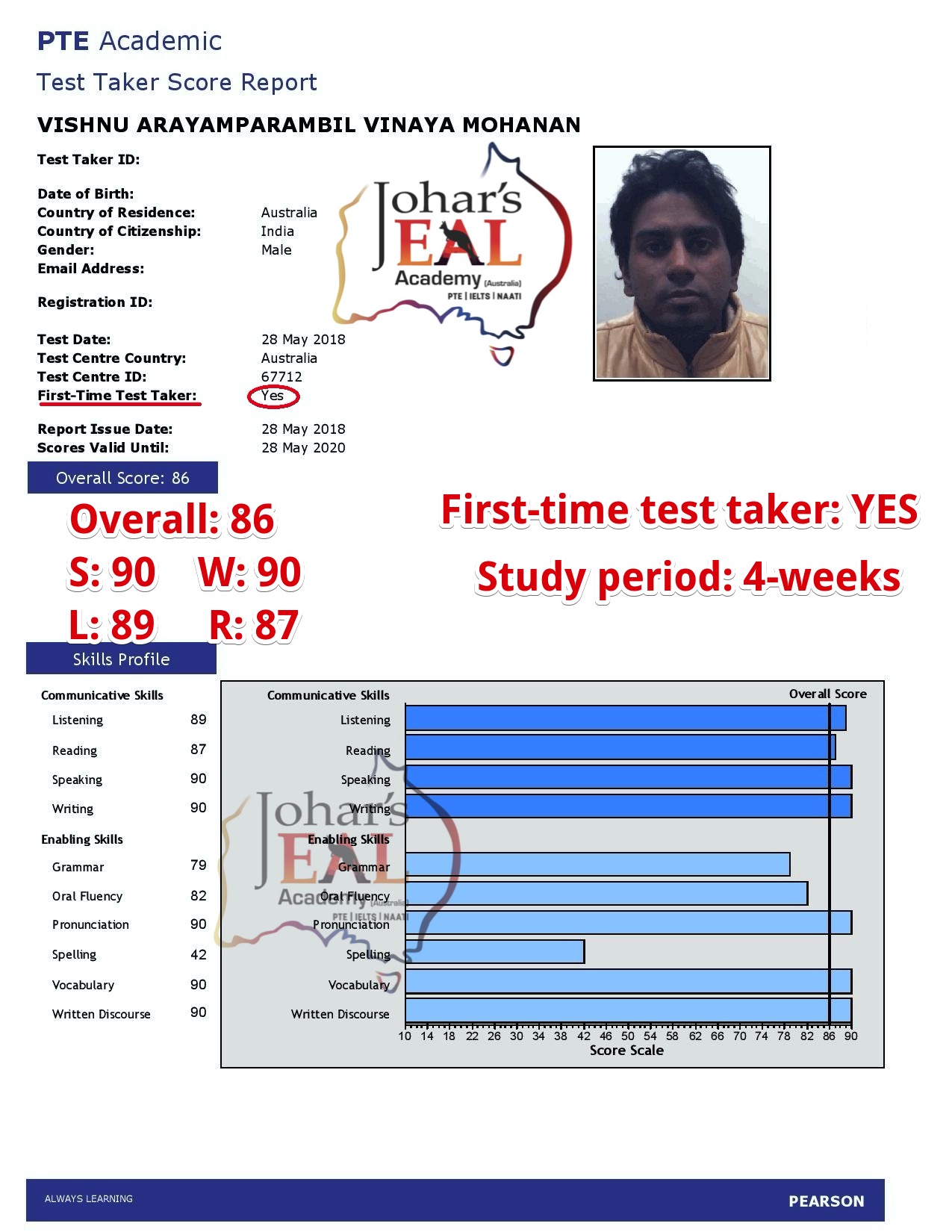 Johar's EAL Academy (formerly Johar's PTE/ IELTS Melbourne) was founded in 2016 in Melbourne by Rajesh Johar, a former British Council trainer and Monash University (Australia) post-graduate English teacher. Mr Johar has done Master of Teaching (English, Monash Australia), M.A. English, M. Phil. (English), Specialisation in Phonology, passed UGC_NET/JRF and has 16 years of English teaching experience. The EAL Academy is determined to cater needs for EAL students across the globe in a virtual classroom setting. Our classes/ lessons are suitable for students preparing for PTE, IELTS, NAATI, OET and TOEFL or they are after improving GENERAL ENGLISH skills for any purposes. Our mission is "student success in the least possible time frame". And for this, we work to identify and set individual goals, assess the present level, prepare pathways according to one's strengths and weaknesses, engage purposefully and ensure success. Since its inception, Johar's EAL Academy has helped hundreds of students from different linguistic backgrounds to get their required score. Many students, who before joining the Academy had been struggling to get a 6-band equivalent, were able to achieve 8-band plus, and the pieces of evidence of such students are in our success stories.